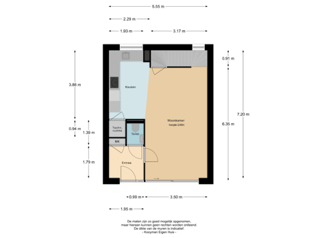 - 38 m² (6,80 meter diep en 5,60 meter breed)