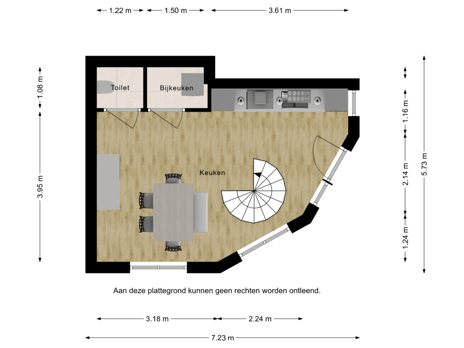 - 10 m² (1,50 meter diep en 7,00 meter breed)