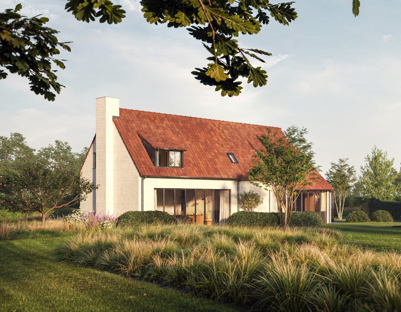 Dit tuinontwerp is uitgetekend op een groter achtergelegen perceel landbouwgrond en is afzonderlijk aan te kopen.