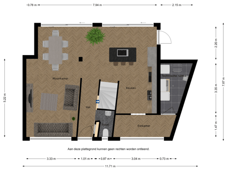 - 55 m² (5,00 meter diep en 11,00 meter breed)