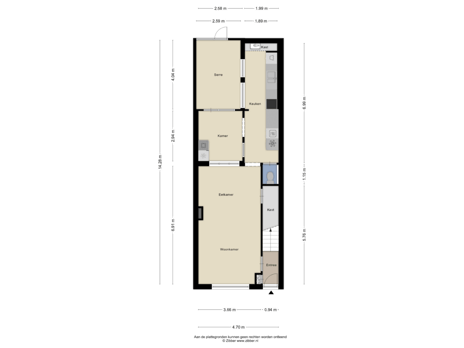 - 85 m² (18,00 meter diep en 4,70 meter breed)
