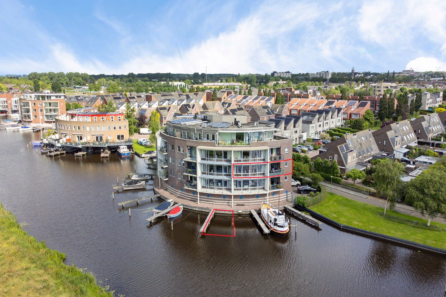 Modern hoek appartement met eigen garage, forse ligplaats en zeer weids uitzicht over water en weilanden! Wat een mooie plek om te wonen...