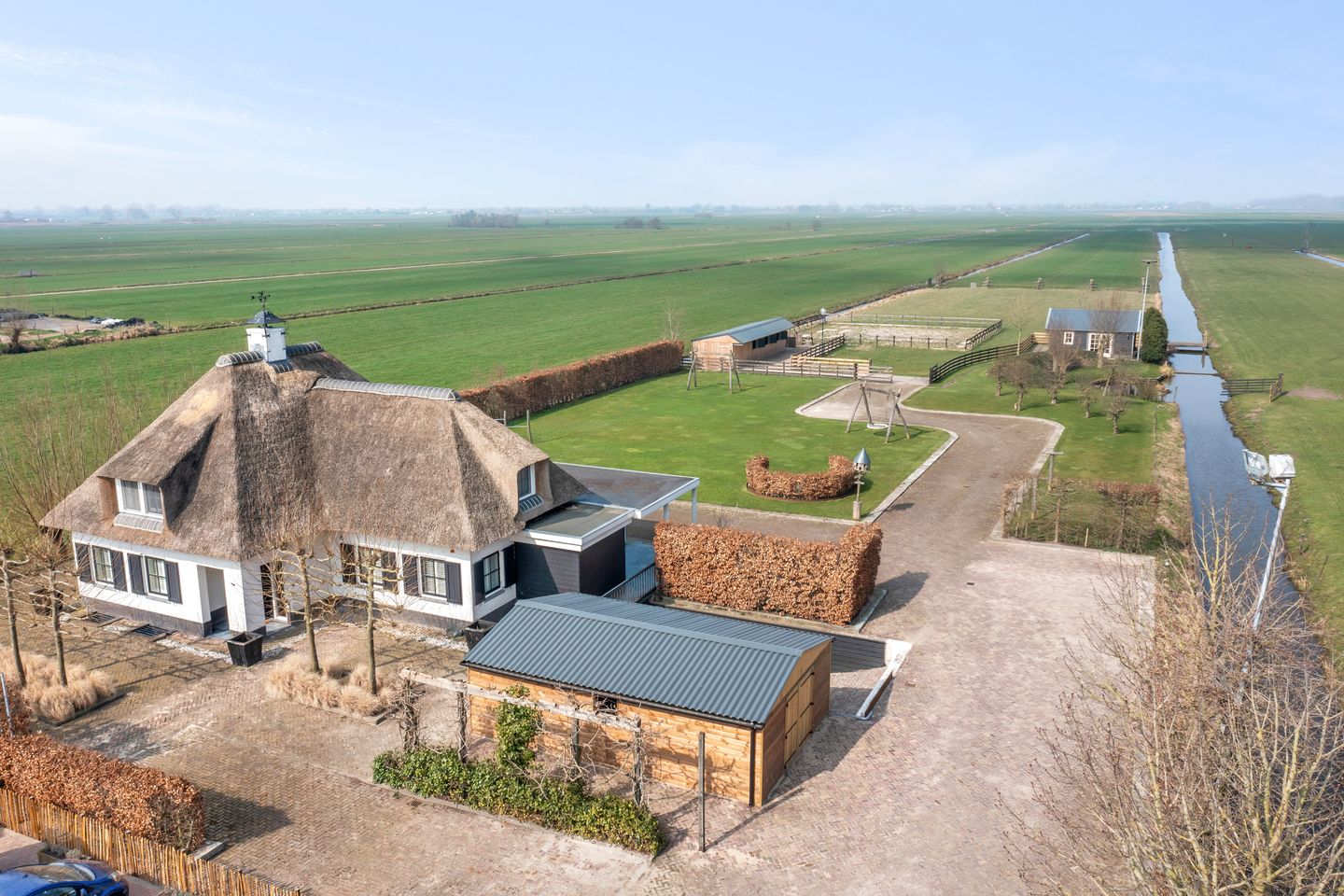 Niet vaak komt er zo'n mooi instap klaar landhuis te koop met buitenverblijf, schuur, paardenaccommodatie, erf en een groot perceel weiland. Hier kunt u luxe en landelijk wonen op een schitterende locatie met vrij uitzicht over het polderlandschap.