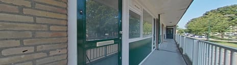 Het balkon meet ruim 5 m², ligt op het zuidwesten en is bereikbaar via de beide slaapkamers en de woonkamer.