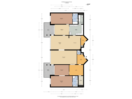 1e VERDIEPING: Entree met toilet, ruime ontvangsthal, een master-bedroom annex kleedruimte en een badkamer met douche, toilet en wastafelmeubel. Vanuit de hal is er, door middel van dubbele deuren, toegang tot een zeer ruime woonkamer, die door de royale afmetingen is opgedeeld in meerdere gezellige zithoeken en een eetgedeelte. Dit eetgedeelte grenst direct aan de half openkeuken, met aansluitend de bijkeuken met wasruimte. Voorts beschikt het appartement over een mooie werkkamer alsmede een 2e slaapkamer met eveneens een eigen badkamer voorzien van ligbad, douche en wastafelmeubel.
