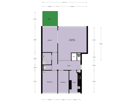 - gebouwgebonden buitenruimte (balkon): 8 m2