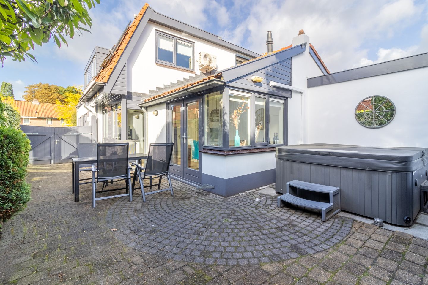 - een verwarmd zwembad (opnieuw gecoat in 2024, leidingen vernieuwd in 2025), verwarmd middels een solarsysteem op het dak van de garage,
