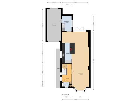 - 128 m² (16,00 meter diep en 8,00 meter breed)