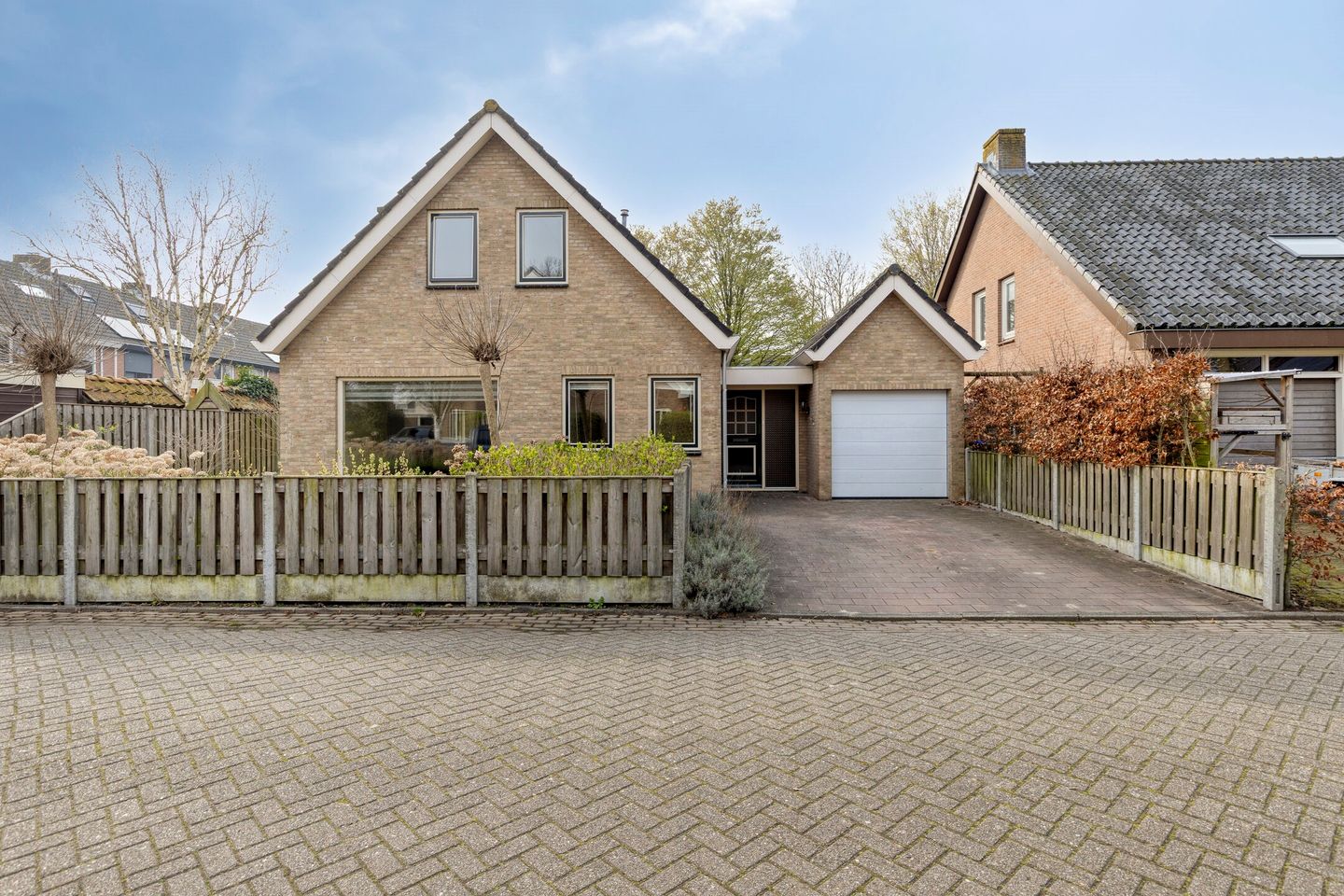 Ook aan de voorzijde heb je een ruime oprit met parkeergelegenheid en toegang tot de garage.
