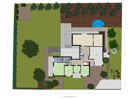 Rondom deze villa strekt zich de heerlijke tuin uit die zich als een groen decor om het huis heen vouwt. Hier geniet u van een sfeervolle, bosachtige setting met diverse bomen, hagen en paden die het buitenleven echt tot leven brengen. Het geheel voelt royaal, volwassen en uiterst privé – een tuin die in elk seizoen iets moois te bieden heeft.