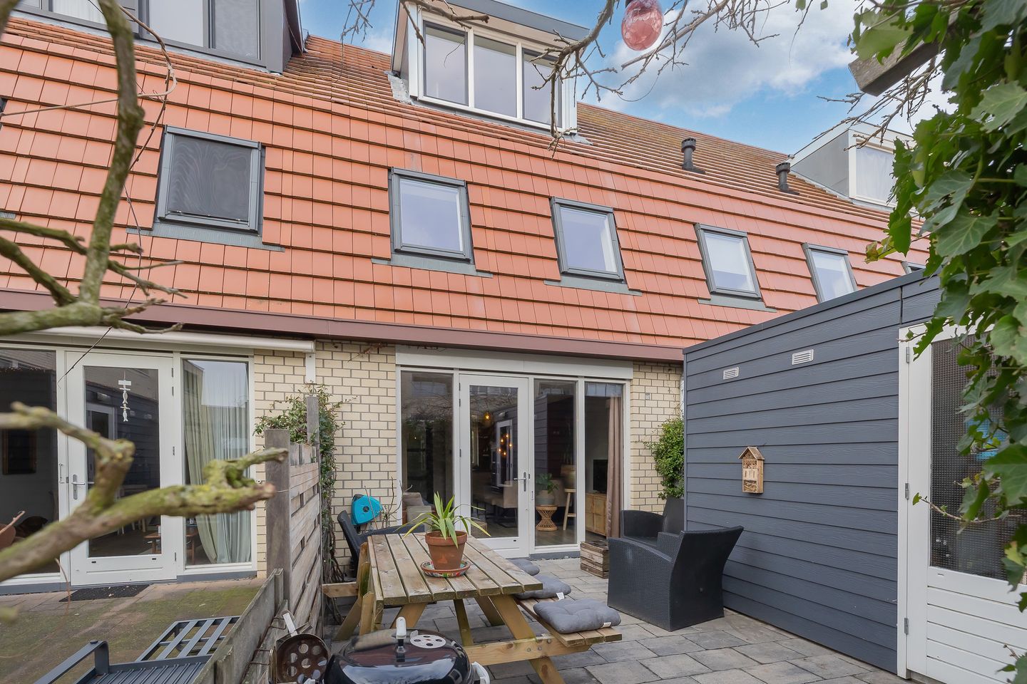 De achtertuin met berging ligt op het zuiden - perfect voor zonnige dagen en geeft tevens toegang tot de gezamenlijke binnentuin.