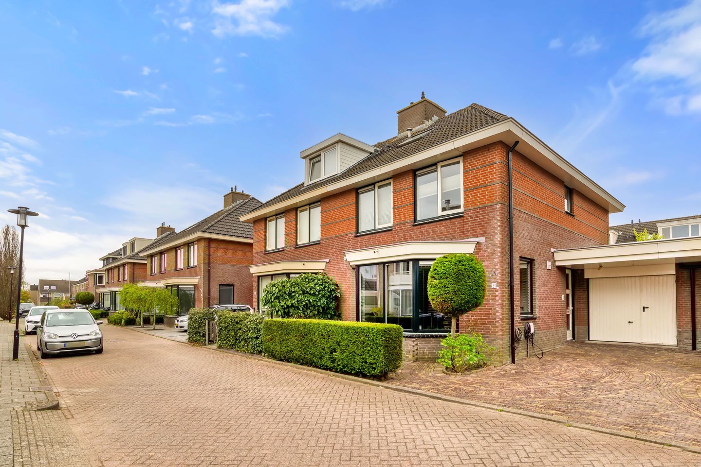 De woning is gebouwd in 1999 en heeft ca 133 m2 woonoppervlakte. Ruime L-vormige woonkamer met plavuizen en vloerverwarming, wanden en plafond zijn voorzien van vlak stucwerk en een brede schuifpui met elektrische zonwering. De open keuken met erker en zijraam is gelegen aan de straatzijde en voorzien van diverse inbouwapparatuur (5-pits gaskookplaat, afzuigkap, oven, koelkast en vaatwasser).