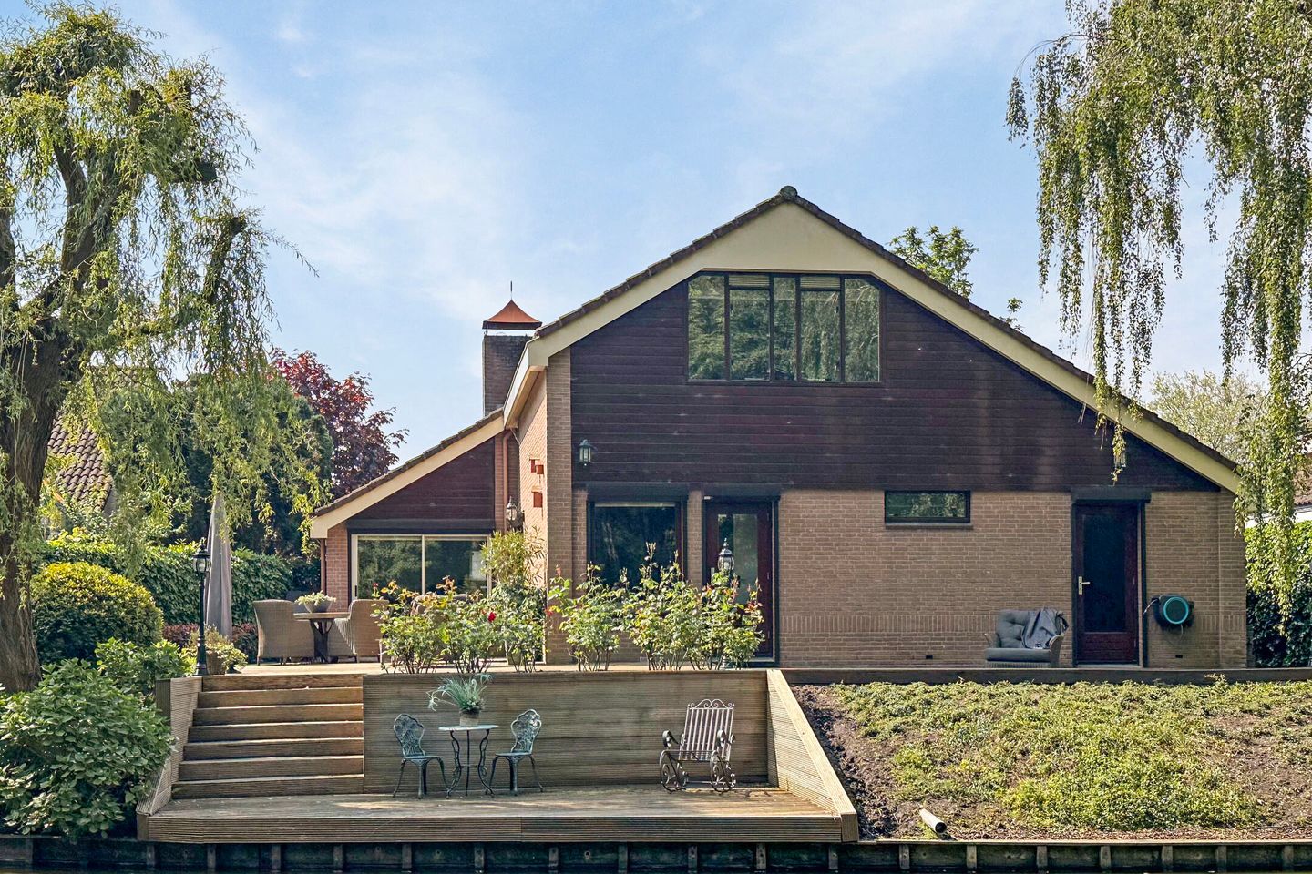 Wat een mooi perceel is dit! Een tuin volledig rondom de woning met veel groen, terras en parkeermogelijkheden op het eigen terrein. Aan de achterzijde is deze heerlijke tuin voorzien van een mooi terras aan het water. Hier kunt u genieten van een goed ontbijt met een bakje koffie of een mooi diner met familie of vrienden. Rondom de woning zijn uiteraard veel mogelijkheden om een mooie verdeling te maken in planten, stukken gras en fijne terrassen aan de zonkant. Een royaal perceel eigen grond met altijd wel ergens zon!