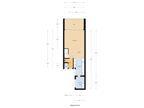 - 54 m² (10,25 meter diep en 5,25 meter breed)