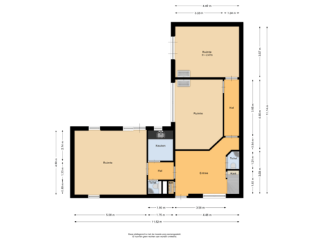 - 52 m² (7,30 meter diep en 7,06 meter breed)