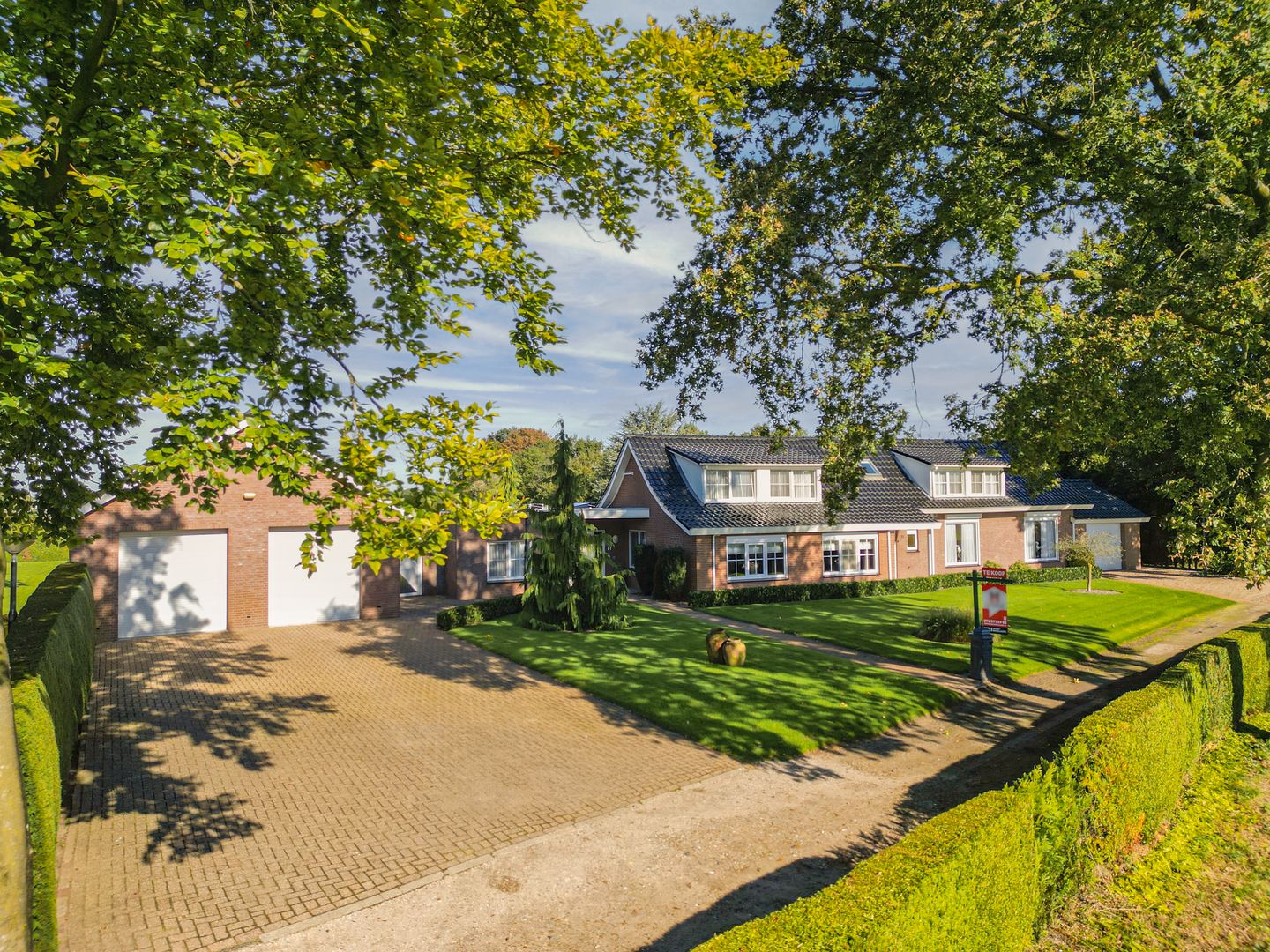 De royale, fraai aangelegde tuin rondom het huis biedt volledige privacy, omringd door bomen en uitkijkend over een uitgestrekt weiland aan de achterzijde waar uitstekend paarden gestald kunnen worden. De tuin beschikt tevens over bijgebouwen, zoals een houten tuinhuis en een (voormalige) paardenstal met opslag/bergruimte (ca. 7.39 x 8.34 m).