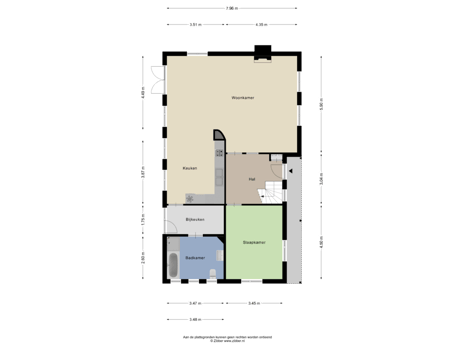 Je komt binnen in de hal met open trap en meterkast. Direct aan je linkerhand vind je de slaapkamer – ideaal als je gelijkvloers wilt wonen. De woonkamer is ruim en sfeervol, met een houtkachel en openslaande tuindeuren naar de achtertuin. De open keuken sluit hier mooi op aan en heeft een hoekopstelling met houten blad en handige inbouwapparatuur. Via de keuken kom je in de bijkeuken/achterportaal, met toegang tot de badkamer. Die is compleet uitgerust met een ligbad, douche, toilet en wastafel.