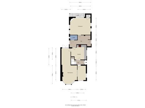 Indeling: Hal, meterkast, woonkamer met erker en suite-deuren naar werkkamer en openslaande deuren naar de tuin, eetkeuken met ruime keukenopstelling, achterhal met plavuizenvloer, toilet, ruime tuinkamer met openslaande deuren naar de tuin. De woonkamer, keuken en tuinkamer zijn voorzien van houten vloerdelen.