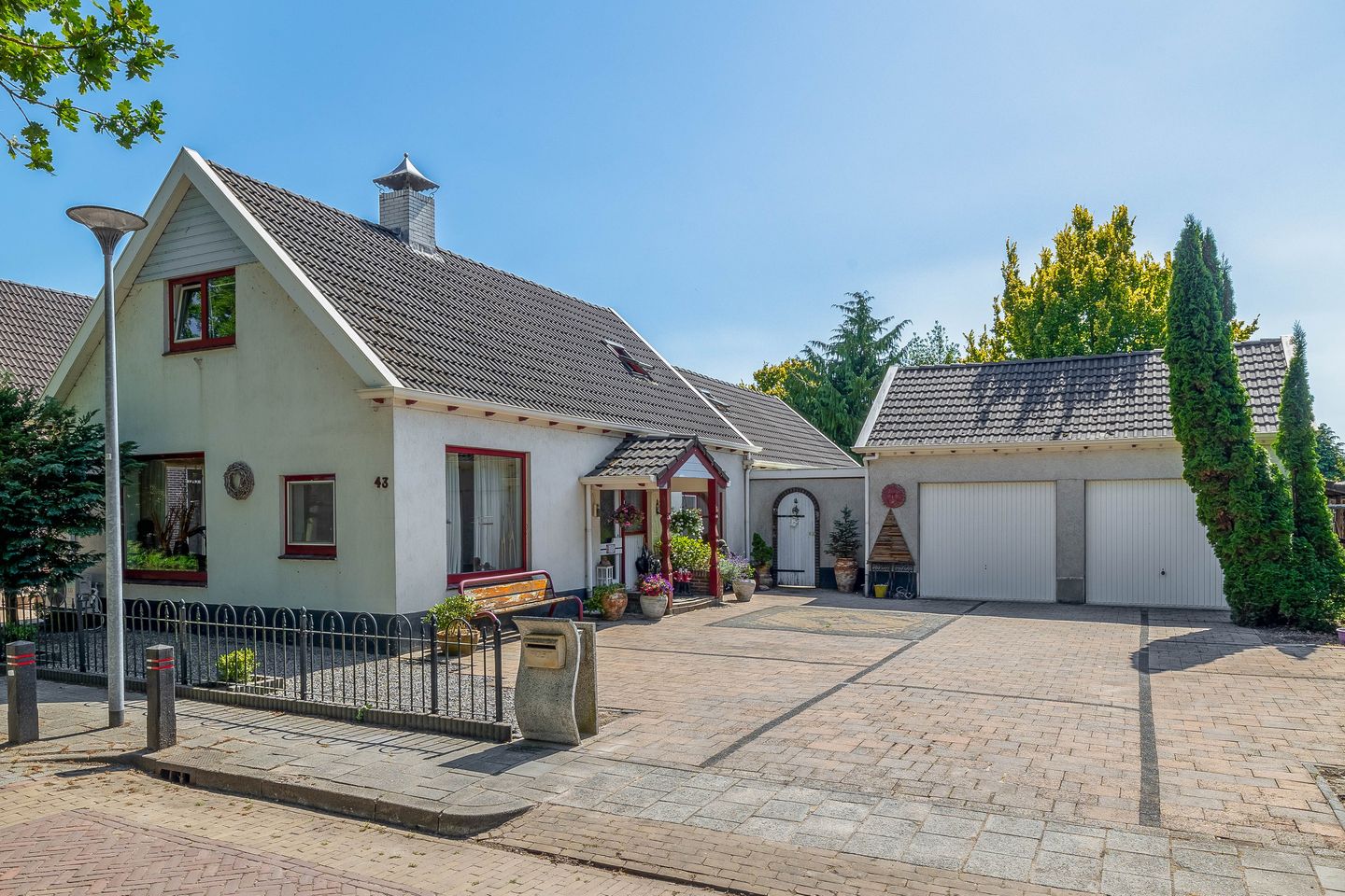 De woning beschikt over 2 opritten aan de beide zijden van het huis en voldoende parkeergelegenheid op eigen terrein voor meerdere auto's.