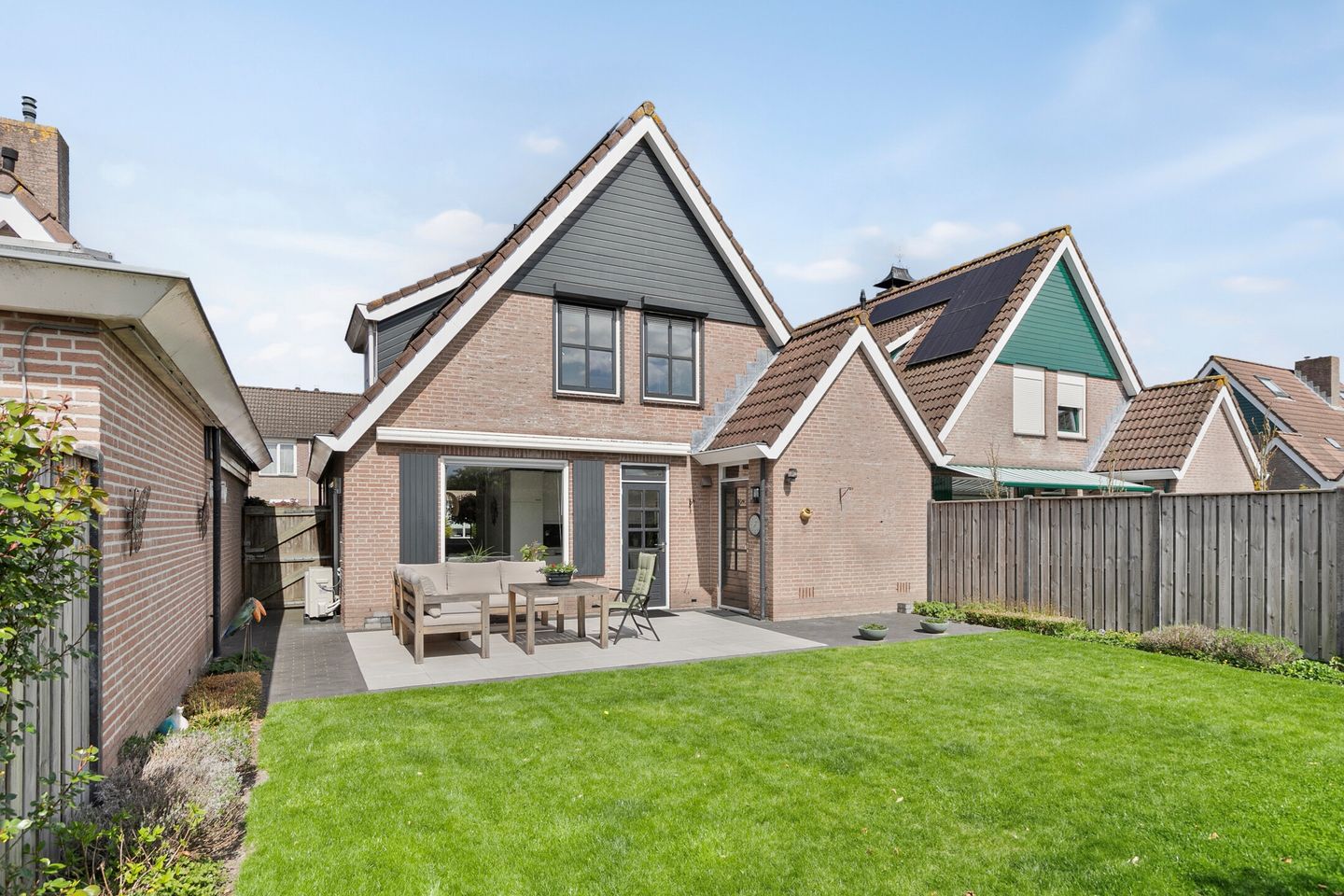 In deze zonnige tuin met volop privacy voelt het alsof de vakantie nooit eindigt. Of het nu gaat om een ontspannen ochtend met koffie, een middag zonnen met een goed boek of een lange zomeravond met vrienden en een goed glas wijn, hier geniet je in alle rust van het buitenleven. De achtertuin is voorzien van een terras, gazon, achterom en biedt toegang tot de garage.