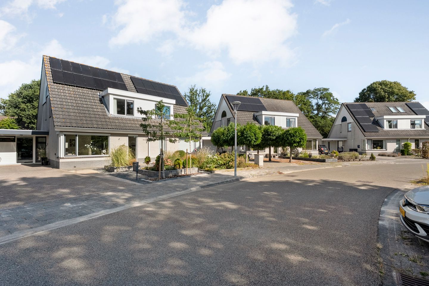 Alles in huis ademt aandacht en liefde. Horren zorgen voor frisse lucht zonder muggen, de gevels zijn geïmpregneerd, het zonnescherm aan de achterzijde vouwt zich geruisloos uit op warme dagen, en aan de voorzijde zorgen screens voor extra zonwering en privacy. Ook is er al een voorbereiding getroffen voor een laadpunt voor een elektrische auto. En dankzij 16 zonnepanelen en een waterontharder woon je hier niet alleen comfortabel, maar ook duurzaam.