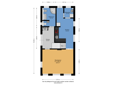 - 35 m² (5,00 meter diep en 7,00 meter breed)