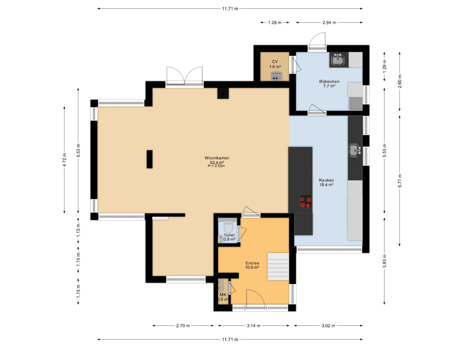 De keuken en de bijkeuken zijn beiden voorzien van vloerverwarming.