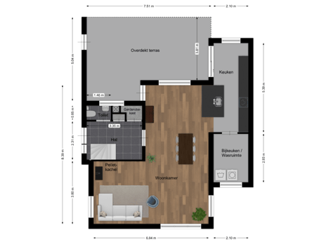 - De woning is voorzien van 14 zonnepanelen en een airco;