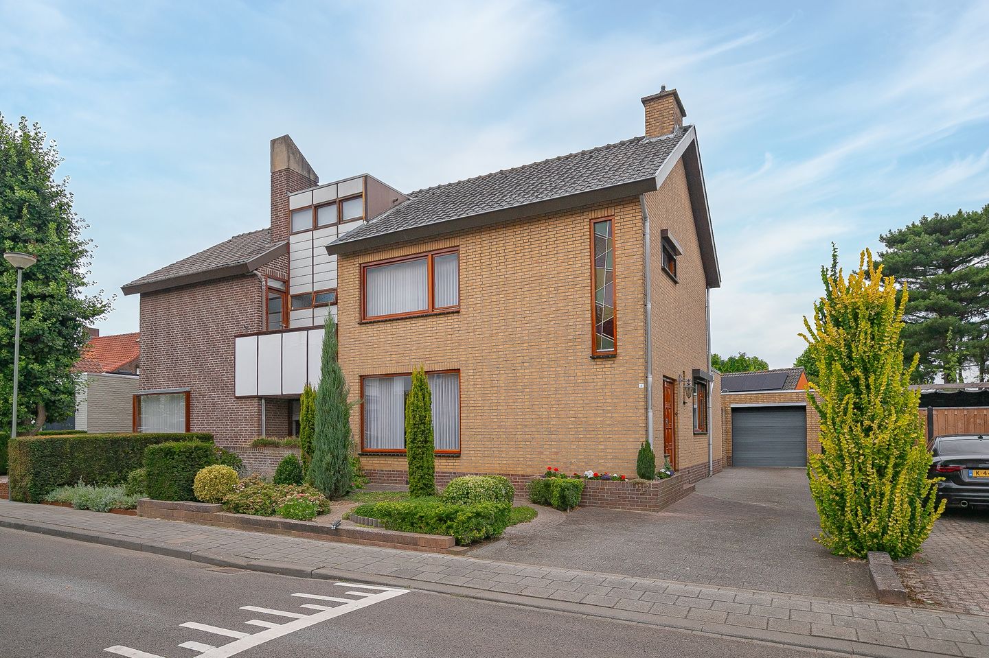 Ruime hal met glas-in-lood raam, meterkast (vernieuwde groepenkast met 10 groepen) en toilet met wandcloset en wastafeltje. Woonkamer (ca. 39.5m²), doorlopend in de aanbouw. Het eerste deel van de woonkamer (ca. 28.4m²) is voorzien van een gashaard en is in gebruik als zitkamer. Het tweede deel van de woonkamer (ca. 11.1m²) is in gebruik als tv-kamer. Keuken met moderne aanrechtcombinatie met natuurstenen aanrechtblad, voorzien van de volgende apparatuur: inductiekookplaat, vaatwasser, combimagnetron, koelkast, spoelbak en afzuigkap. Bijkeuken (ca. 4m²) met witgoedaansluitingen en keukenblok met magnetron. Overdekt terras (ca. 14.2m²).Brede garage (ca. 23.9 m² / 3.46 x 6.90 meter) met elektrisch bedienbare sectionaalpoort. Achter de garage gelegen berging (ca. 13.2m²) .