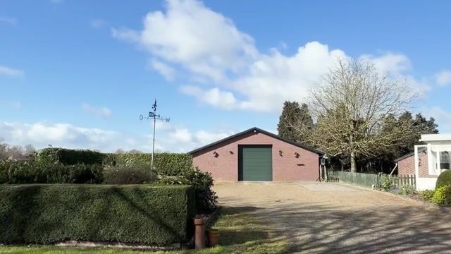 Rondom de woning ligt een verzorgde tuin met meerdere zitplekken, waar je op elk moment van de dag kunt genieten van de rust en het uitzicht. De ligging in het buitengebied zorgt voor volledige privacy en een prachtig vrij uitzicht over de landerijen. Op het perceel staat bovendien een grote vrijstaande garage, verdeeld in twee ruime secties. Deze garage is ideaal voor opslag, het stallen van voertuigen, een werkplaats of hobby’s die extra ruimte vragen. In de garage is ook een smeerput aanwezig.