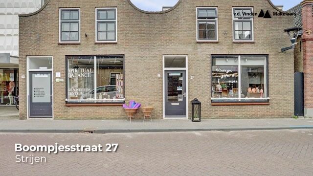 De gebruiksoppervlakte (wonen) is maar liefst 478 m², de bruto inhoud 1658 m³!! Boompjesstraat 27 (voorheen 25-27) is gelegen op een perceel van 397 m² eigen grond, dat nagenoeg geheel bebouwd is. Zo lang ik op aarde rondloop (inmiddels een jaartje of 55) heeft hier altijd een winkel gezeten. De levensmiddelenwinkel van Speelman (Arie reed op de SRV kar - mocht je niet weten wat dat is, vraag het je ouders- en Ans runde de winkel). ‘De lekkerste kaas koop je bij Ans van der Maas’ was de leus. Het was nog waar ook. Daarna kwam TH elektra, gespecialiseerd in alarmsystemen en in 2008 opende Linda, samen met Hans, gezondheidscentrum Spiritual Balance met winkel 'De Groene Pionier'.