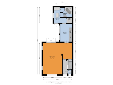 - 100 m² (13,68 meter diep en 9,95 meter breed)