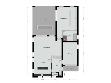Inpandige garage voorzien van een sectionaalpoort en tevens voorzien van een keukenopstelling met veel kastruimte en met de aansluitingen voor witgoed.