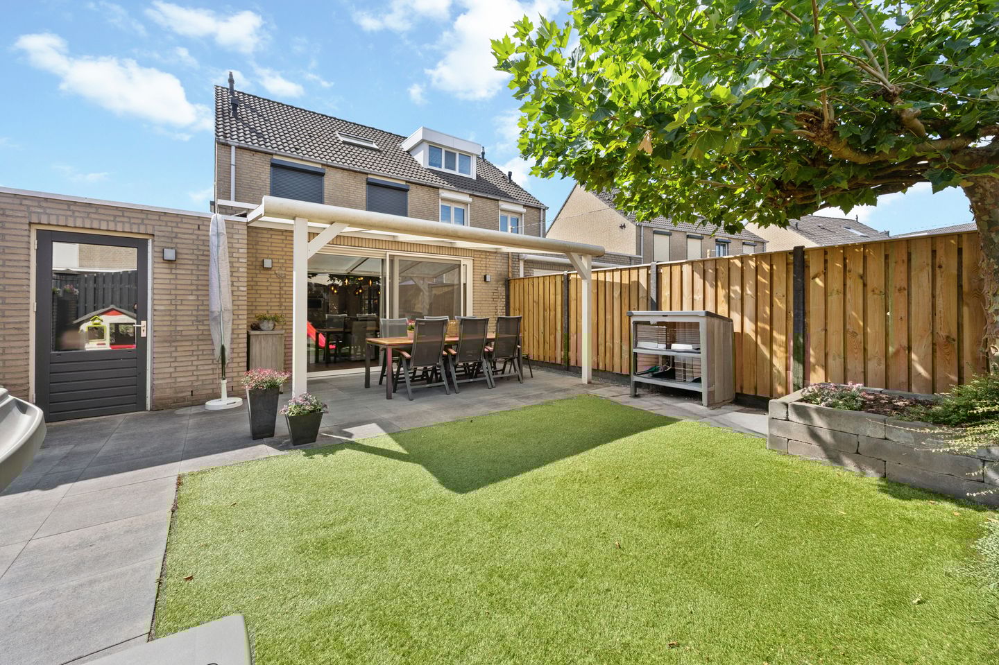 De nette tuin van deze 2-onder-1-kap woning heeft een grote terrasoverkapping en is netjes aangelegd. Zo heeft de tuin een groot terras, een mooi, kunstgras gazon en is de tuin geheel omheind met een nette schutting. Tenslotte heeft dit fijne woonhuis aan de voorzijde nog een ruime oprit, geschikt voor 2 auto’s.