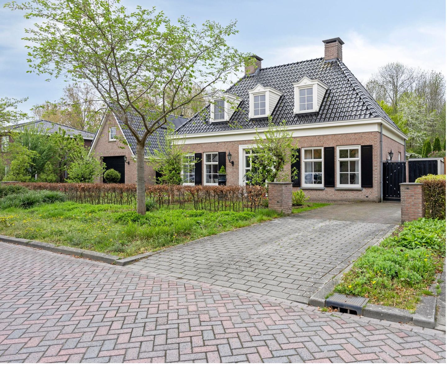 Deze moderne notariswoning straalt luxe uit en heeft met zijn symmetrische gevel, centrale voordeur en stijlvolle daklijn met dakkapellen een stijl die geliefd is vanwege haar tijdloze klasse en praktische indeling.