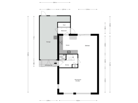 Aansluitend aan de keuken ligt de praktische bijkeuken, waarmee de garage is verlengd tot maar liefst 7 meter diepte!