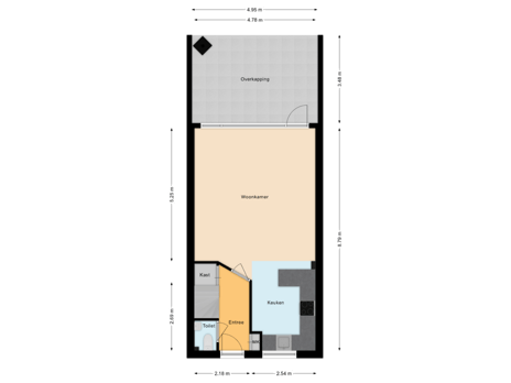 - 68 m² (13,50 meter diep en 5,00 meter breed)