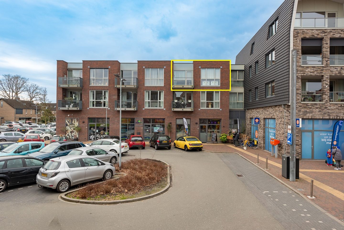 - Lichte woonkamer met zicht op het winkelplein;