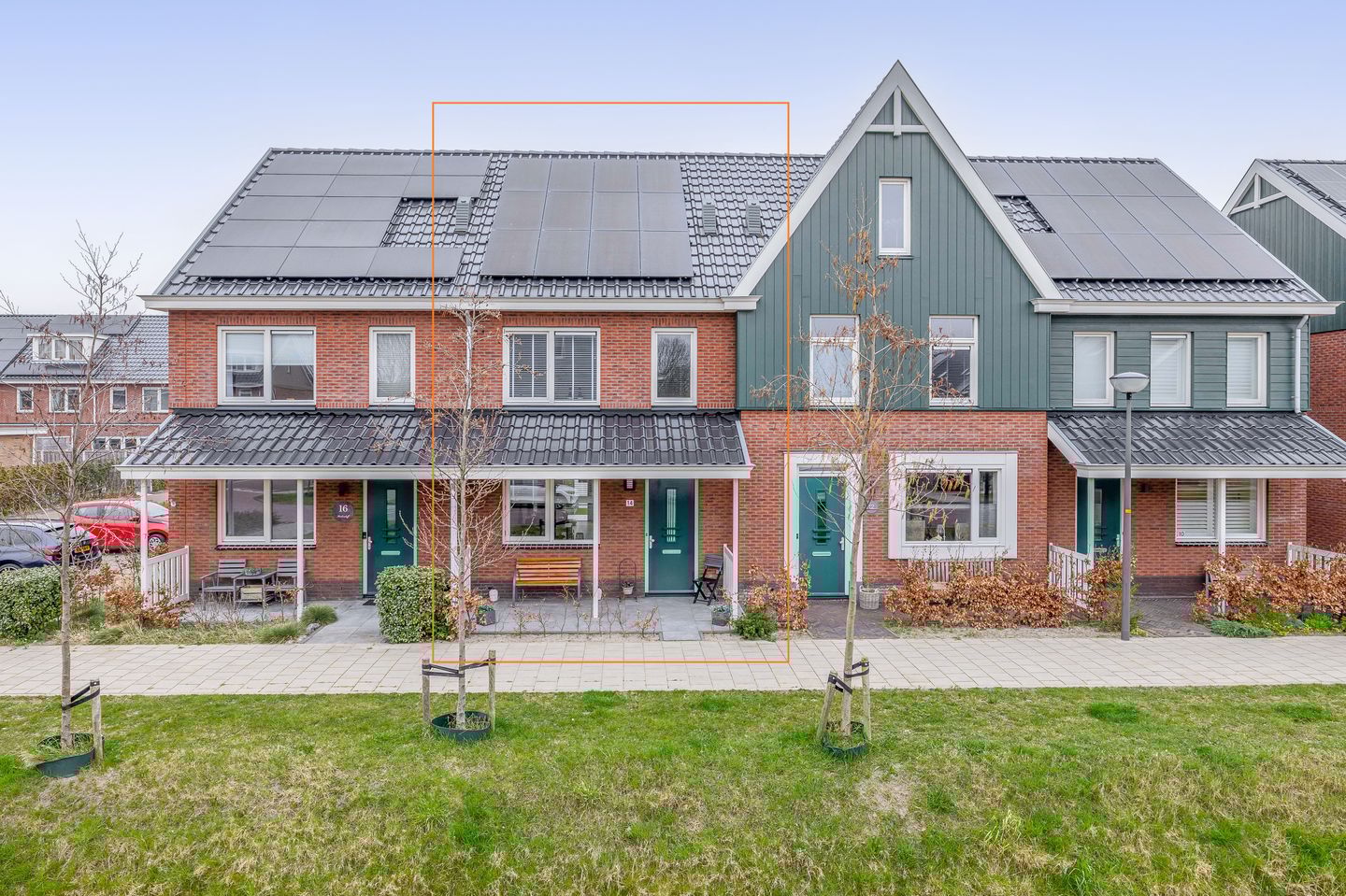 De woning onderscheidt zich met de luifel aan de voorzijde. Dit is een echte blikvanger en zorgt voor een karaktervolle entree.