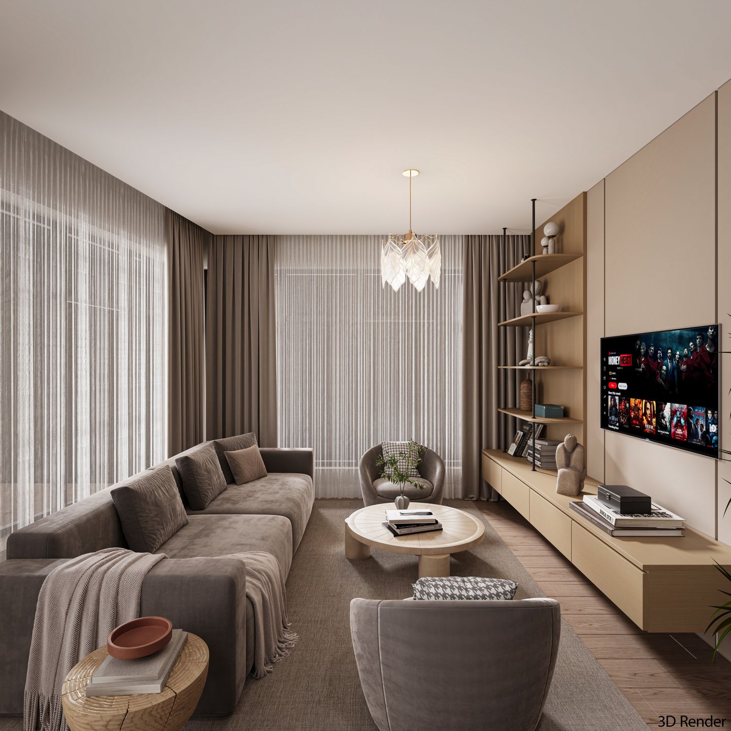 • (Ver)nieuwbouw appartement: enkel de buitenmuren blijven behouden, het appartement wordt van binnen volledig nieuw opgebouwd