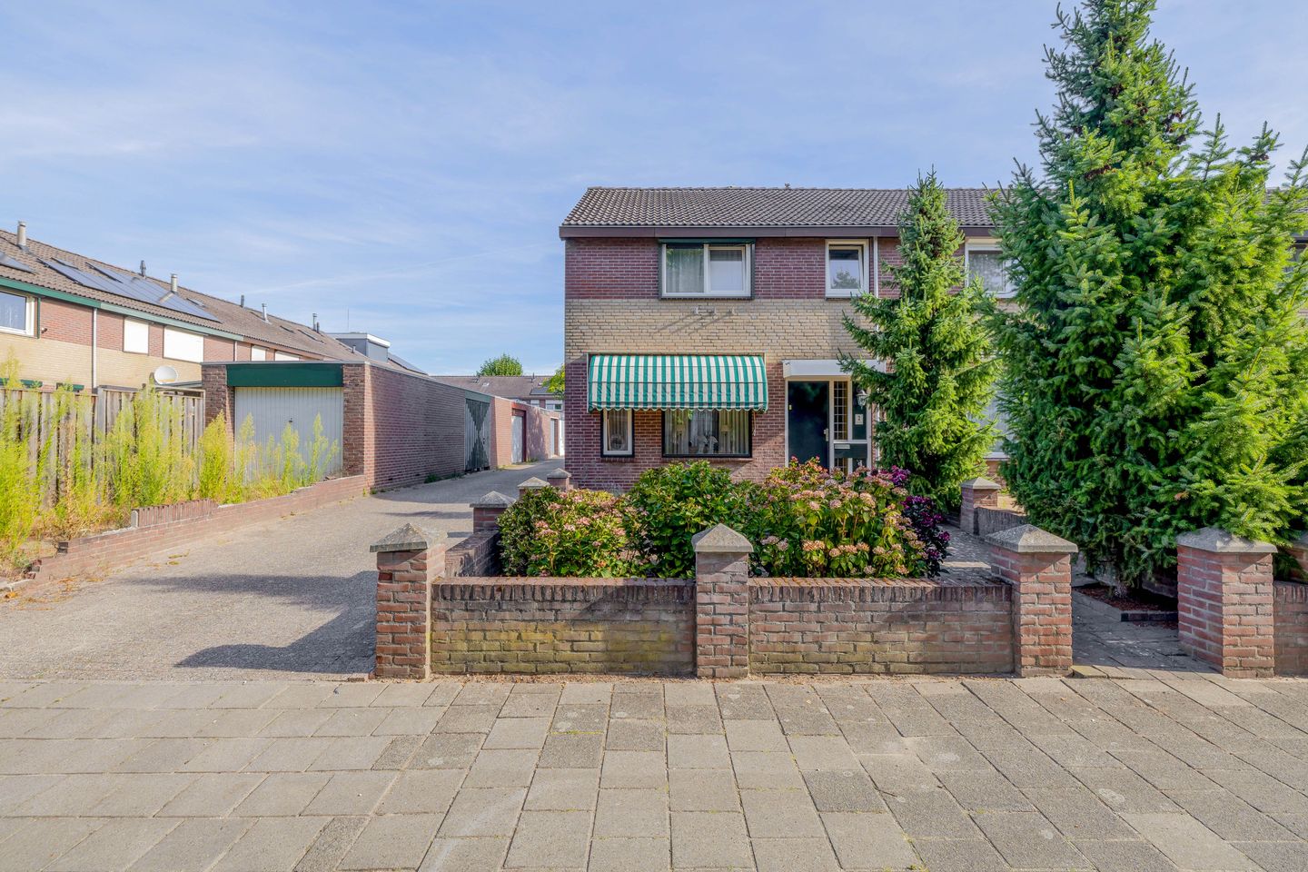 De grote voortuin is eveneens keurig aangelegd en zorgt voor voldoende afstand tot de straat waardoor je ook aan de voorzijde van de woning geen inkijk ervaart.