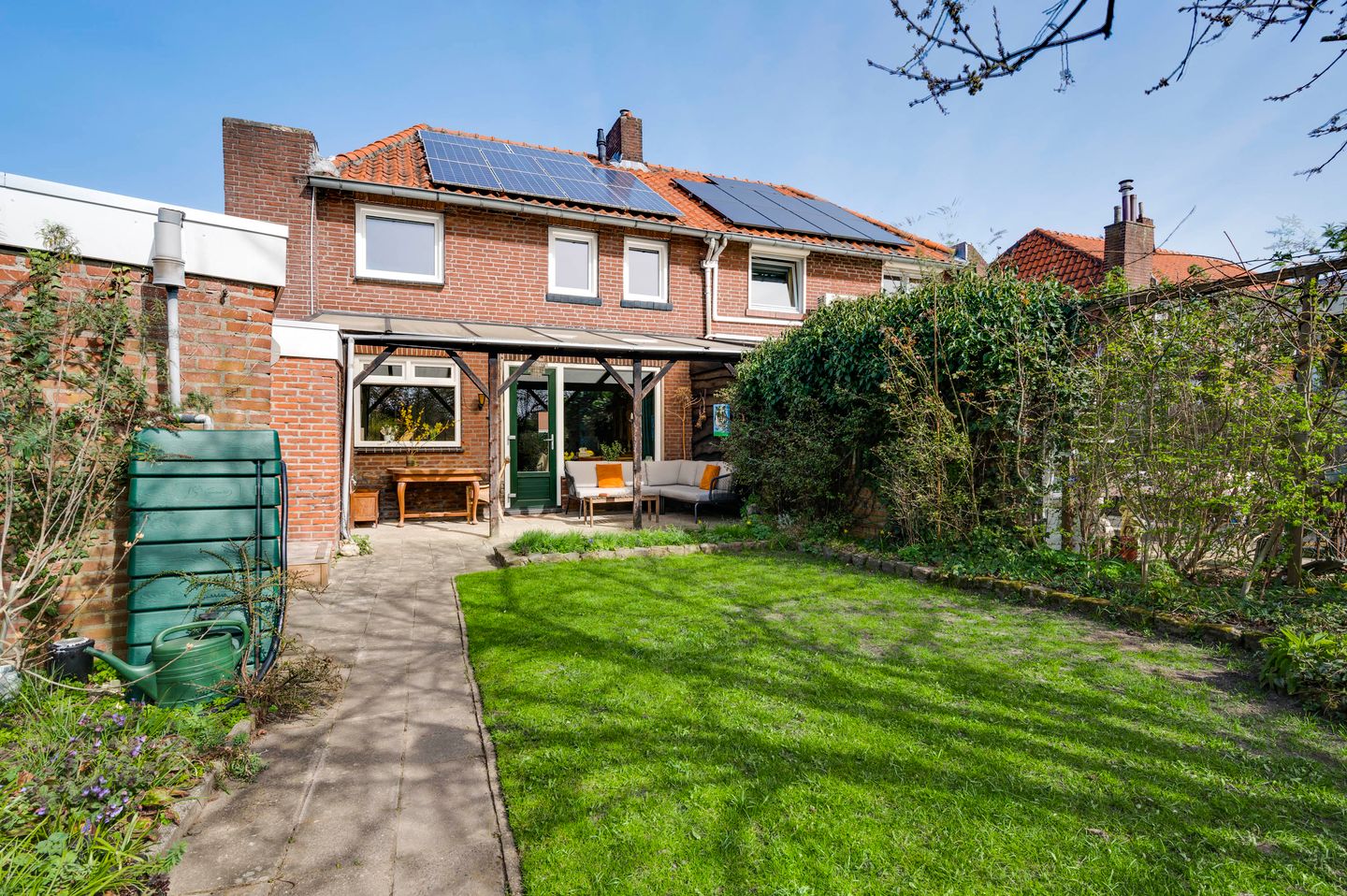 Sfeervol woongenot in deze bijzonder charmante halfvrijstaande jaren '30 woning met een diepe tuin mét eigen oprit én garage! Het geheel is de afgelopen jaren gemoderniseerd én verduurzaamd (o.a. 10 zonnepanelen, triple glas en een compleet isolatiepakket!) en biedt o.a. een ruime L-vormige woonkamer, een gezellige open keuken, een riante bijkeuken/hobbykamer (ook te gebruiken als thuiswerkplek), een vernieuwde, luxe badkamer en 4 slaapkamers op de 1e verdieping. De vrijstaande garage met oprit, 2 overkappingen en de diepe, groene achtertuin mét privacy en een vrije achterom maken het totaal helemaal af!