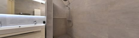 - Dubbele wastafel, inloopdouche, en wastafelmeubel