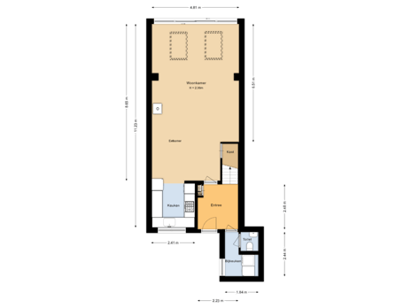 - 60 m² (12,00 meter diep en 5,00 meter breed)