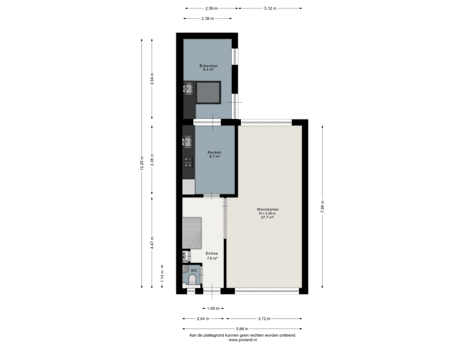 - Gebouw gebonden buitenruimte: ca. 3m2;