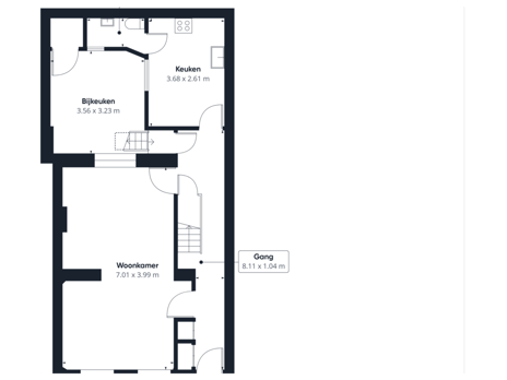Wanneer je de woning binnenstapt, wordt verwelkomd door een ruime hal die direct de klassieke stijl verraadt. De woonkamer en-suite heeft prachtige, karakteristieke elementen en een warme parketvloer die zorgt voor een behaaglijke sfeer. De aangrenzende keuken in hoekopstelling is praktisch ingericht en groot genoeg voor een knusse eethoek. Een aparte toiletruimte met wasmachineaansluiting maakt de begane grond compleet. Aan de achterzijde bevindt zich een royale berging, ideaal voor fietsen of extra opslag. Dit deel van het huis biedt bovendien mogelijkheden om extra woonruimte te creëren of juist een gezellige patio in te richten. Vanuit de hal is ook het dakterras bereikbaar – een zonnige plek waar je heerlijk ongestoord kunt ontspannen.