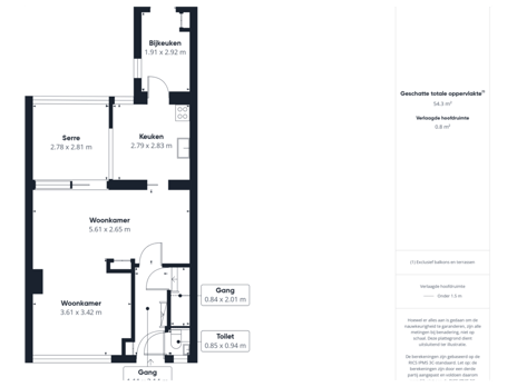 - 48 m² (8,00 meter diep en 6,00 meter breed)