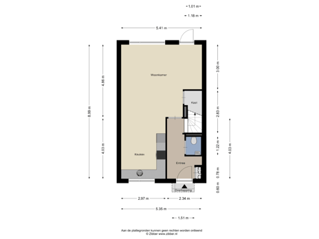 - 76 m² (13,29 meter diep en 5,70 meter breed)
