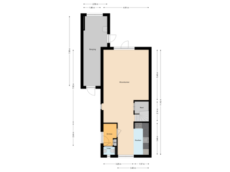 * afmeting berging: 4,30 m x 1,86 m + 3,28 m x 2,58 m