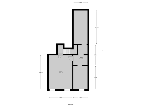 Tussen de hal en de eetkamer zijn twee open trappen, één naar de kelderverdieping en één naar de eerste verdieping.